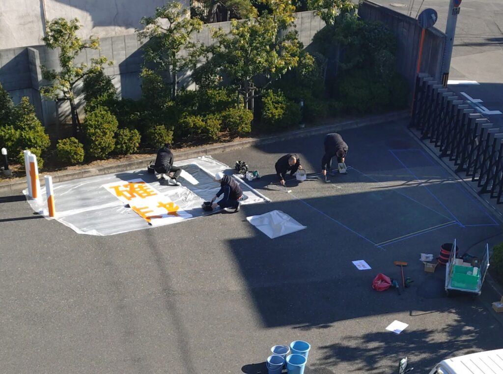 仕上がり寸法4,255㎜×2,610㎜を4分割してアスファルト面に設置しました。